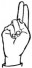 На ћирилици написано ЈУГОМИР ДАНГУБИЋ састоји се из 15 слова [?]. Исписано ћириличном једноручном азбуком за глувонеме: